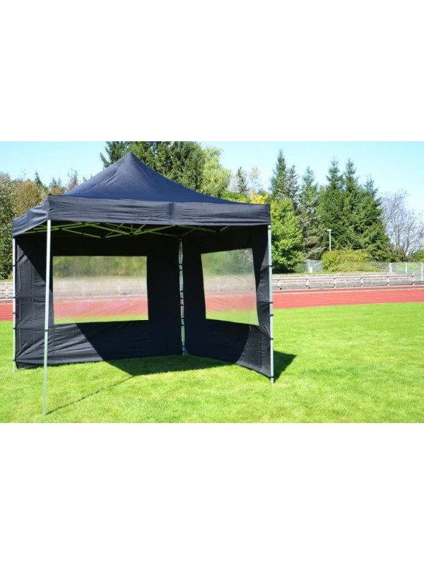 Záhradný párty stan nožnicový PROFI 3x3 m, čierny + 4 bočnice