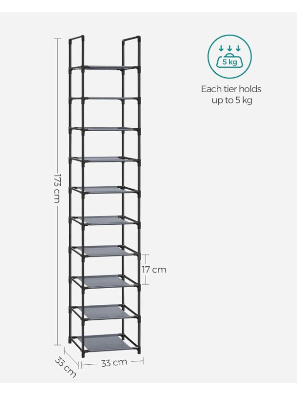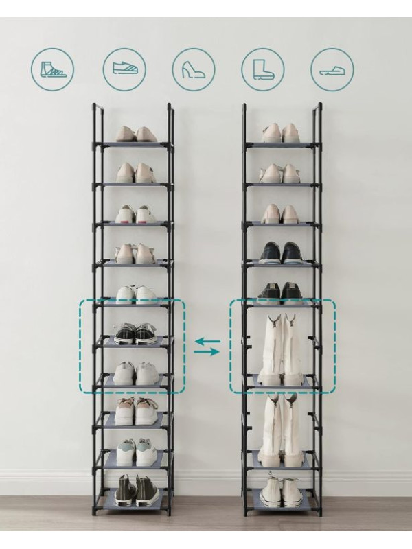 Regál na topánky SONGMICS 10 políc, sivý, 33×33×173 cm