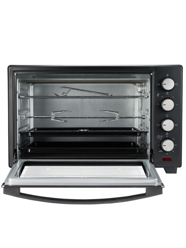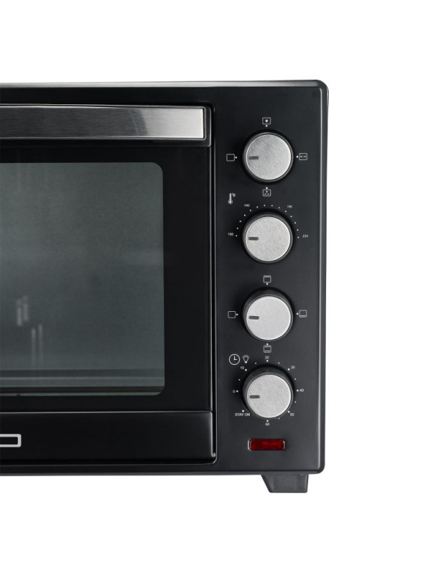 Tento kuchynský spotrebič je tým pravým riešením pre malé kuchyne. Naša mini rúra s príkonom 2000 W a objemom 48 litrov vám pomôže dosiahnuť vynikajúce výsledky pečenia. Čierny plášť dokonale ladí s akýmkoľvek interiérom kuchyne v garsónkach, na internátoch, v karavanoch a iných malých domoch. Vďaka nastaveniu časovača jedlo už nikdy nepripálite.