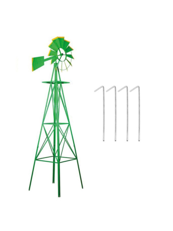 Náš veterný mlyn sa skladá z robustného oceľového rámu a je chránený proti korózii, náterom odolným proti poveternostným vplyvom. Mlyn je k dispozícii v rôznych farbách. So svojou výškou 245 cm je skutočnou ozdobou Vašej záhrady, na jej postavenie je potrebná plocha 64 x 64 cm.