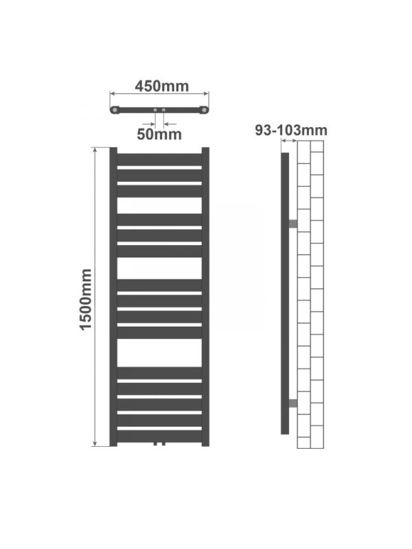 AQUAMARIN Vertikálny kúpeľňový radiátor, 1500 x 450 mm