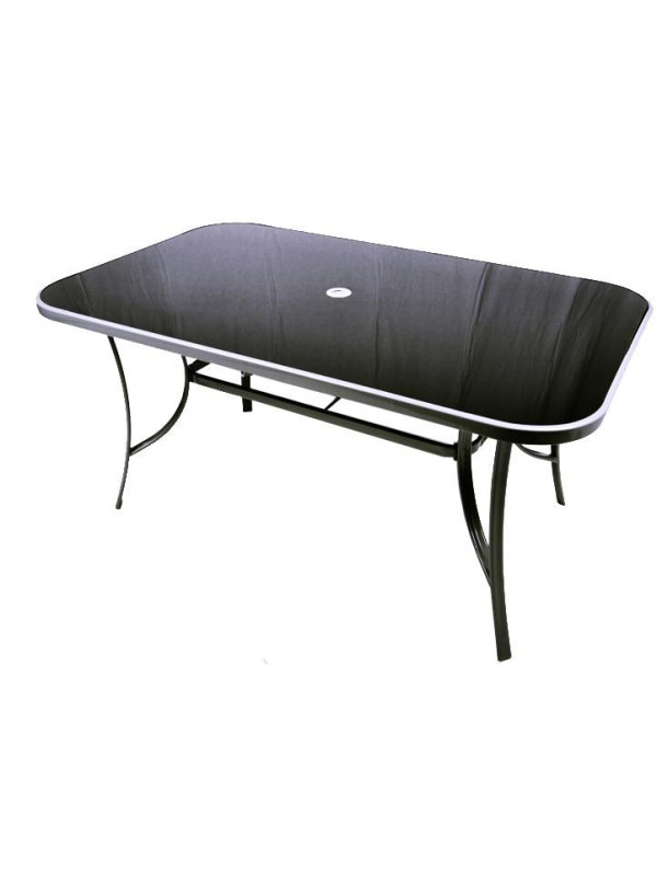 - oceľový stôl so sklenenou doskou a otvorom na slnečník