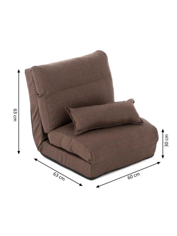 Toto kreslo je vhohné pre každú príležitosť. Naša podlahová pohovka je nielen útulným a štýlovým sedadlom, ale môže byť premenená aj na pohodlnú posteľ v niekoľkých jednoduchých krokoch. Ponúka úžasný pocit zo sedenia a ležania, je individuálne nastaviteľná, a preto je ideálna ako herná alebo meditačná stolička. Všestrannú pohovku pre jednotlivcov môžete zložiť, aby sa ušetrilo miesto, a je preto vhodná najmä pre malé byty a izby. Vďaka použitej ľahkej konštrukcii má kreslo nízku hmotnosť a možno s ním bez námahy a bez poškodenia podlahy manipulovať.