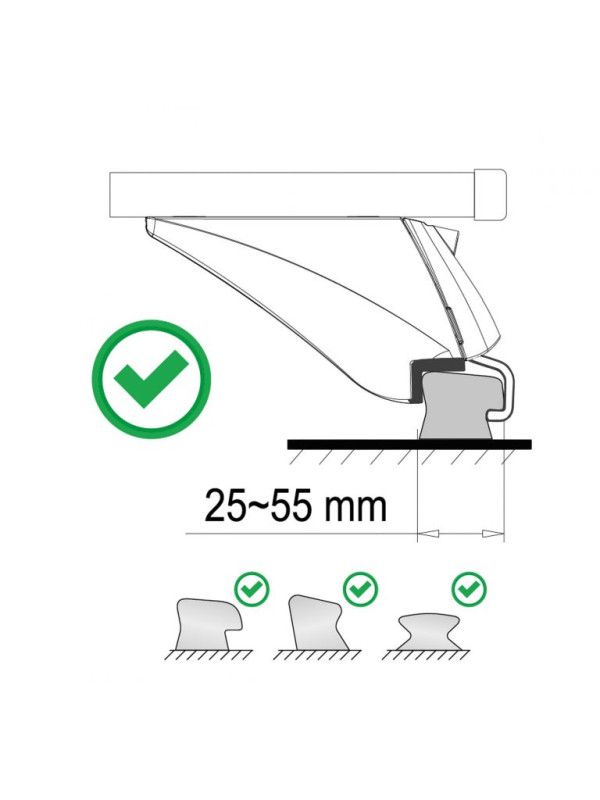 - pre šírku pozdĺžneho nosiča vozidla: 25 - 55 mm