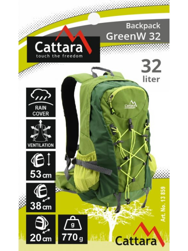 Praktický batoh na túry do prírody alebo aj do mesta. Je vyrobený z polyesteru a má kapacitu 32 l. Na bokoch a čelnej strane sa nachádza mnoho vreciek pre uschovanie vecí, ktoré budete k výletu potrebovať. Má tiež popruhy, ktoré sa ľahko nastavia a zaručia tak dobré nosenie po celú dobu chôdze. Neobsahuje hrudný ani bedrový pás.