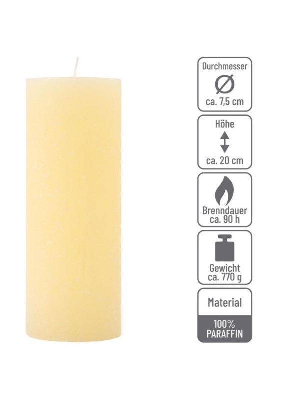 Krémová parafínová sviečka rustikálna 20 cm, 90 h, súprava 2