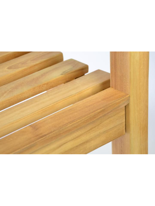 Pre dlhodobý úžitok a radosť z lavice odporúčame pravidelnú starostlivosť o lavicu s teakovým olejom. Nielenže predĺžite životnosť Vašej lavice, ale vďaka oleju zdôraznite žilkovanie dreva. Použité drevo je z kontrolovaných sadov.