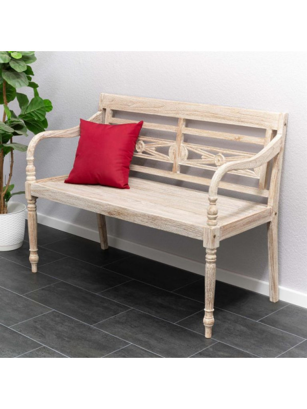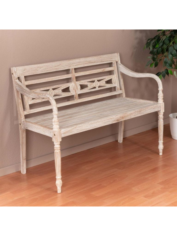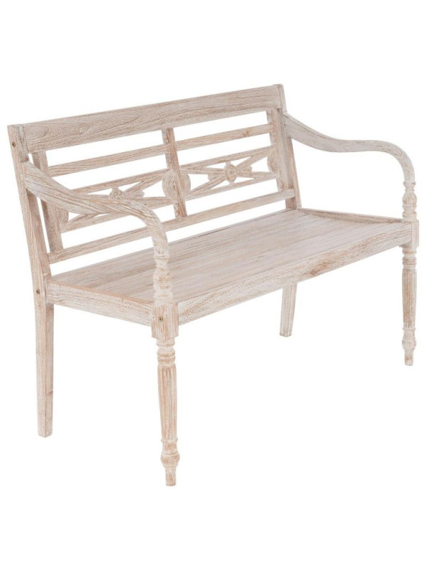 DIVERO 2-miestna lavica - 119 cm, teak, biela shabby