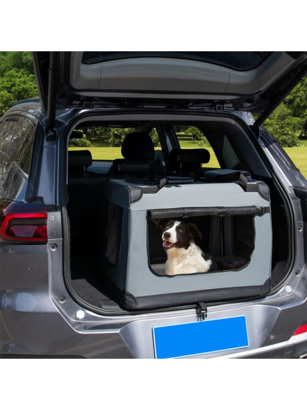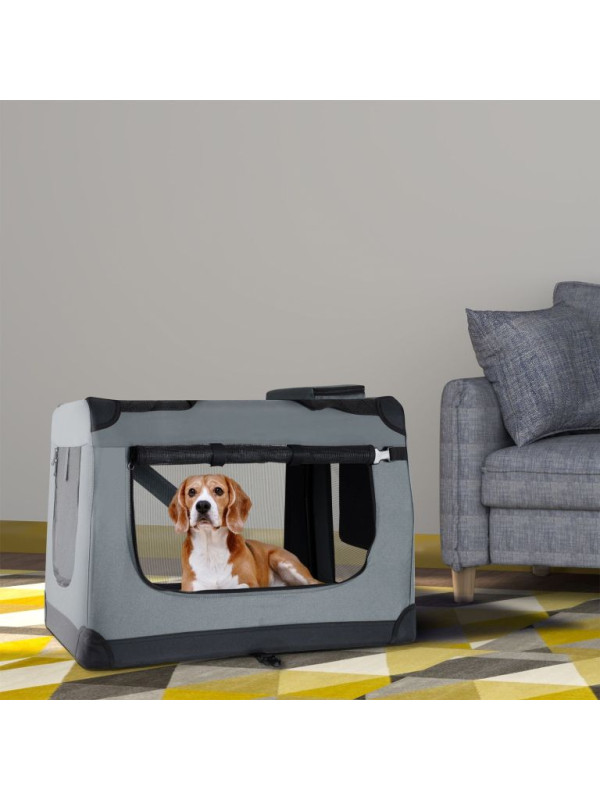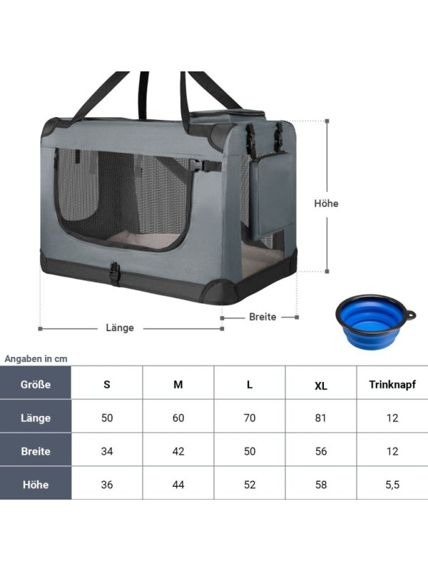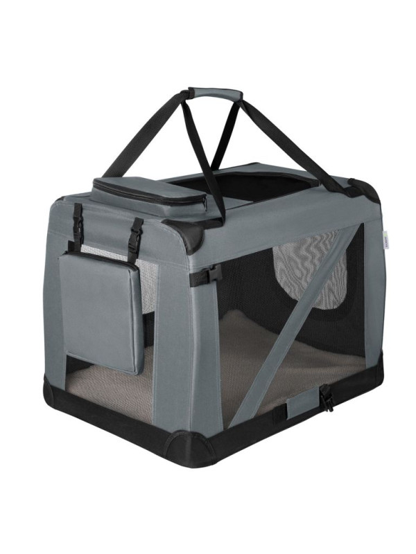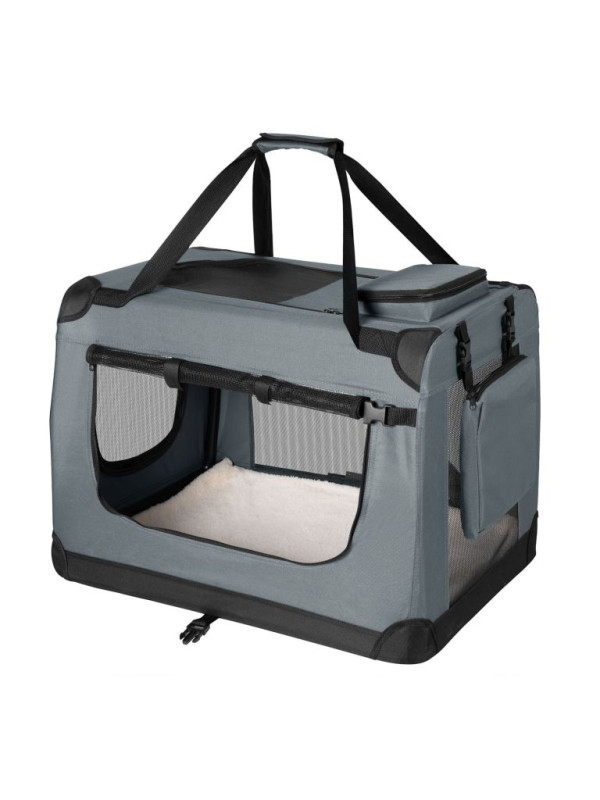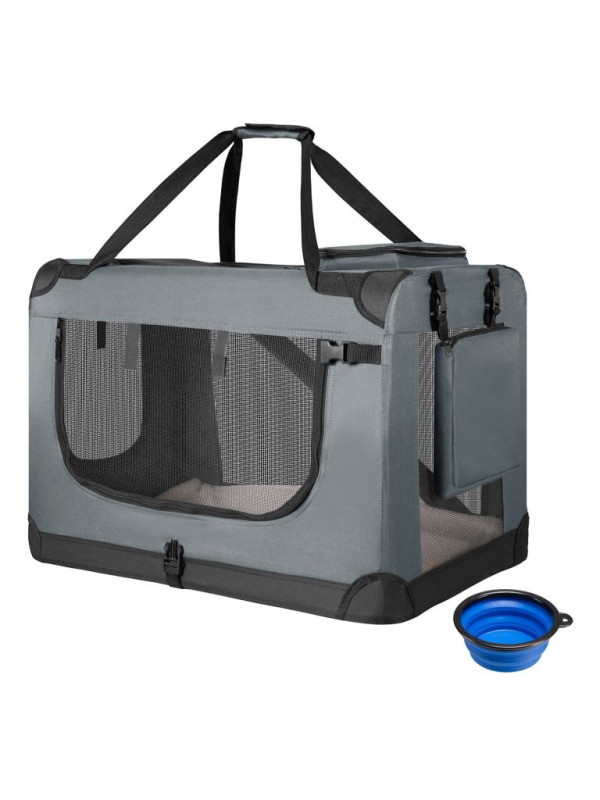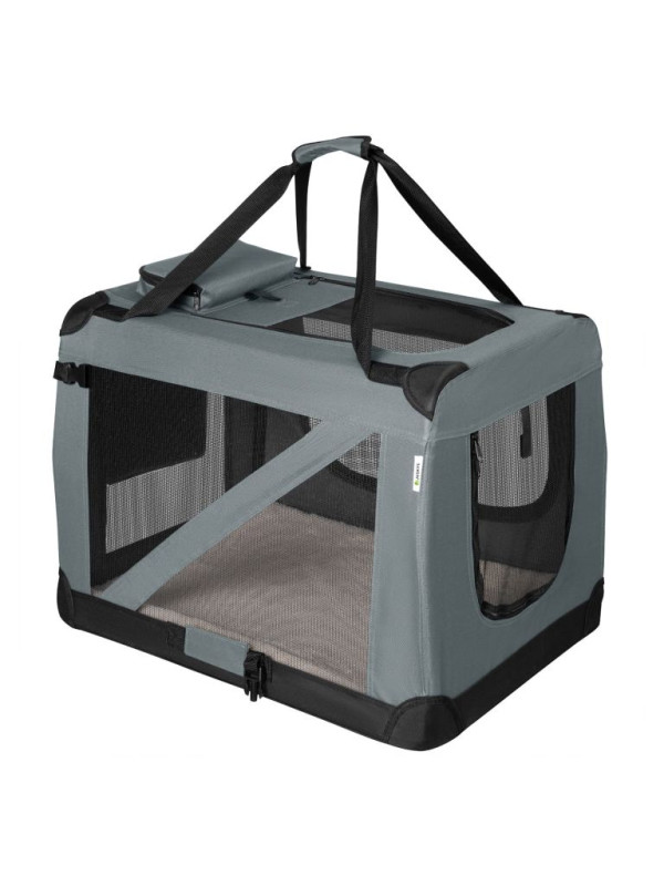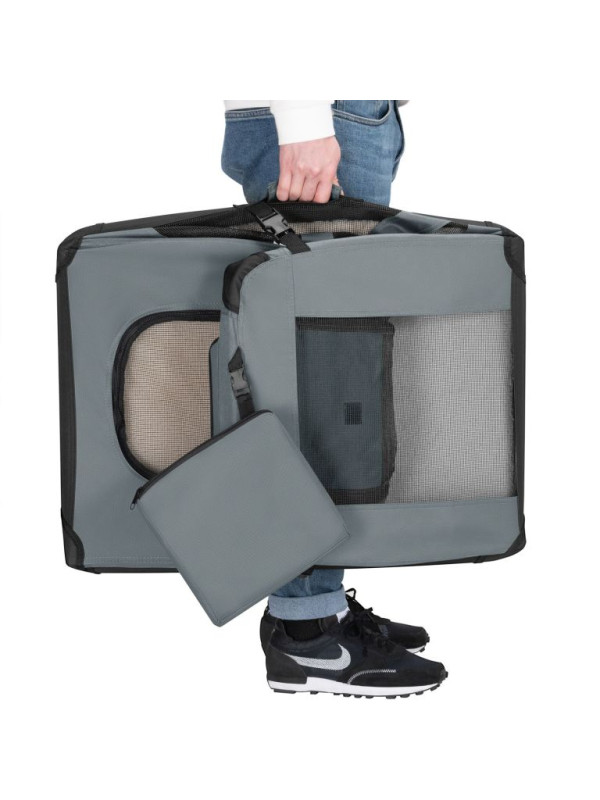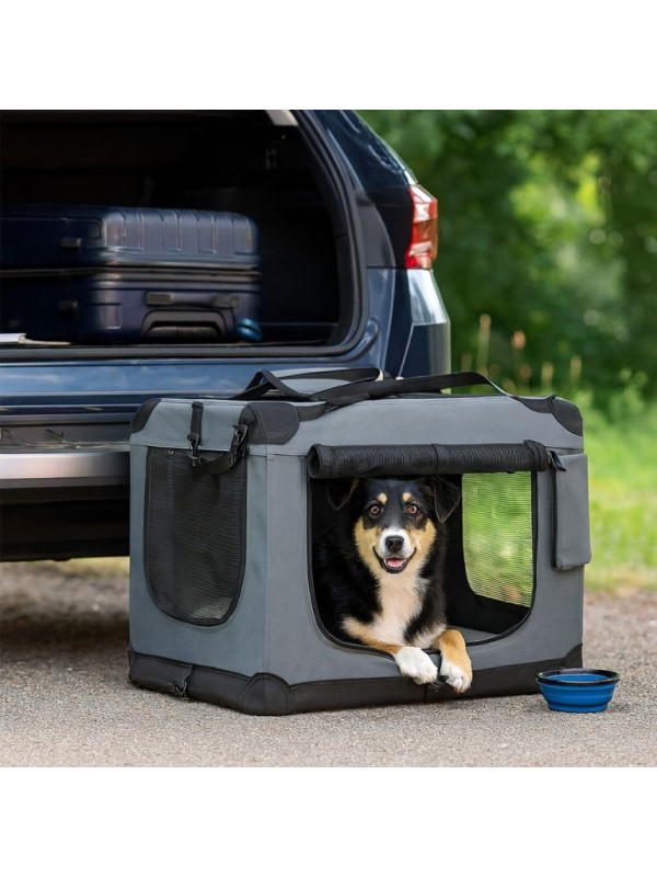 Skladací transportný box pre psov L s miskou a pelíškom, siv