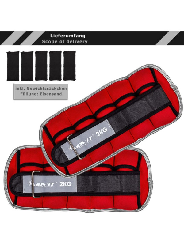 MOVIT Neoprénové reflexné záťažové manžety, 2x2 kg, červené