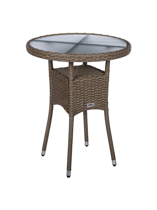 Odkladací stolík vrátane stolovej dosky z matného skla je vyrobený z ručne tkaného polyratanu a má pevný oceľový rám s práškovým nástrekom. Stolík je vhodný na vnútorné aj vonkajšie použitie, napr. na terasu, záhradu alebo balkón. Robustná oceľová konštrukcia je zabalená do polyratanového prútia odolného proti poveternostným vplyvom a UV žiareniu, takže sa nemusíte báť o jeho odolnosť. Vďaka predmontovaným vyrovnávacím skrutkám je možné stolík veľmi ľahko vyrovnať, a môžete ho tak umiestniť na akýkoľvek aj nerovný povrch. Stolík má v spodnej časti praktický odkladací priestor.
