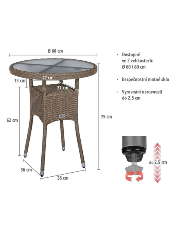 - rozmery stola: 60 x 75 cm (priemer x výška)
