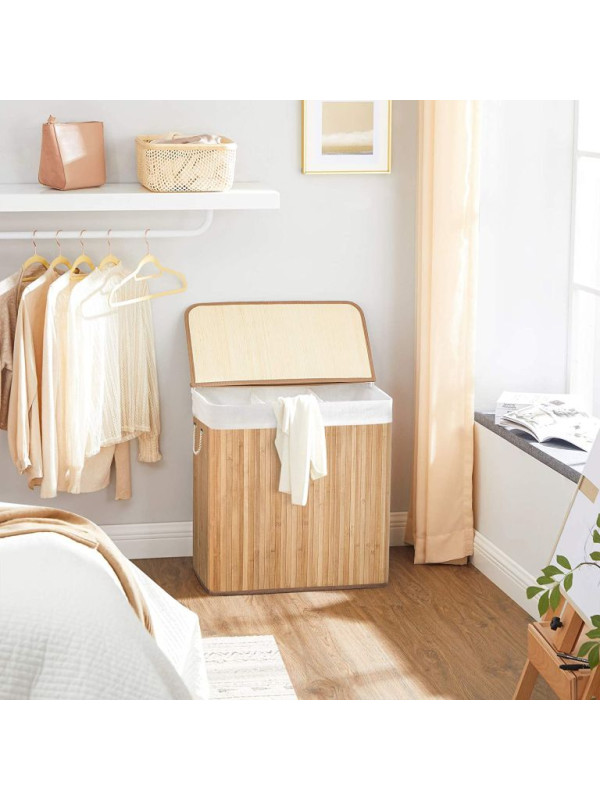 Bambusový košík na bielizeň 150 l s 3 priehradkami a vekom