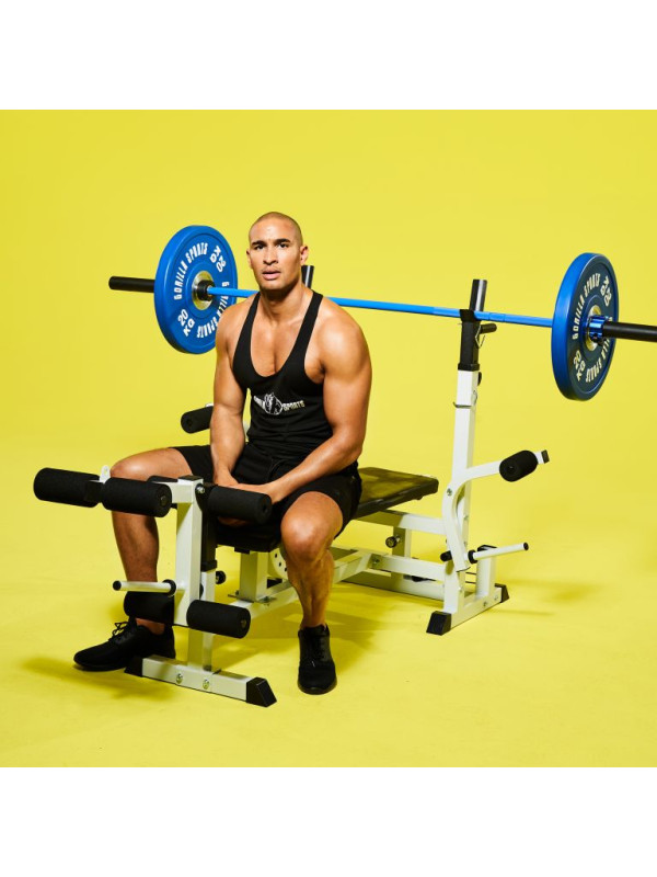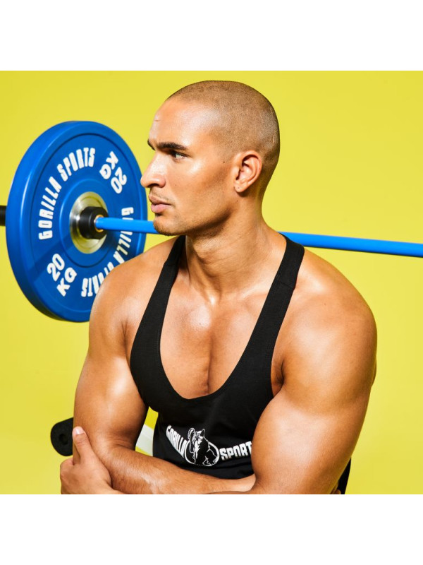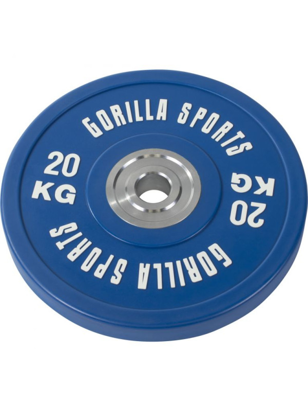 Profesionálny bumper kotúč o hmotnosti 5 kg, 10 kg, 15 kg, 20 kg a 25 kg od Gorilla Sports s farebne odlíšenými váhami.