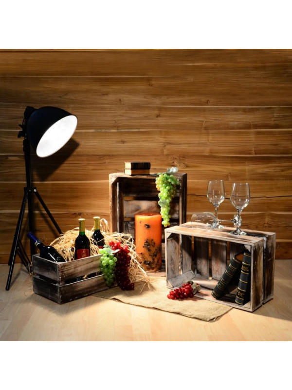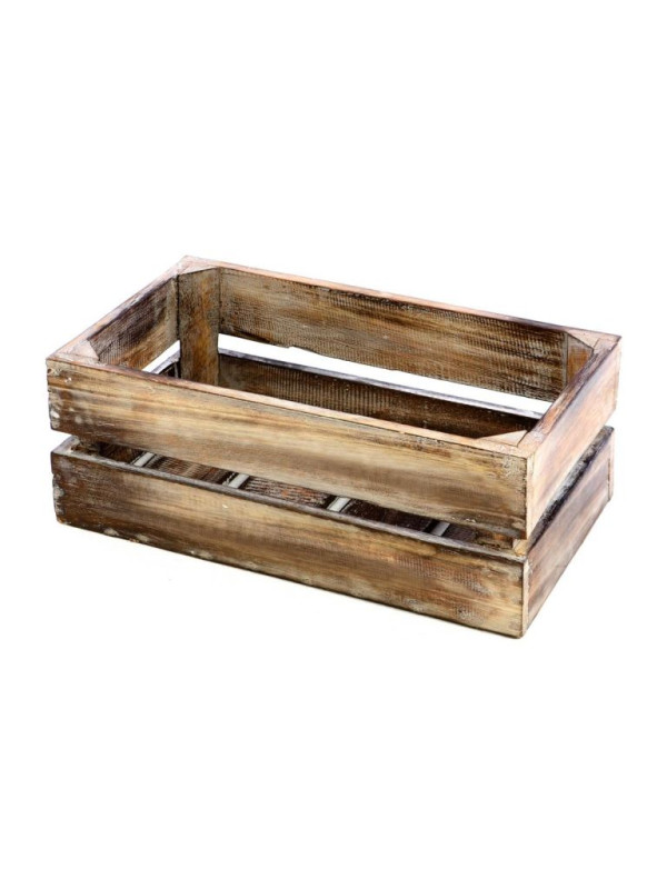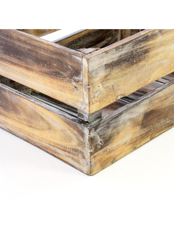 Drevená debna je opálená dohneda v ošumelom vzhľade - shaby chic. Je ručne vyrobená z dreva Albacia, takže je každá debna jedinečná a môže sa mierne líšiť veľkosťou a hmotnosťou.