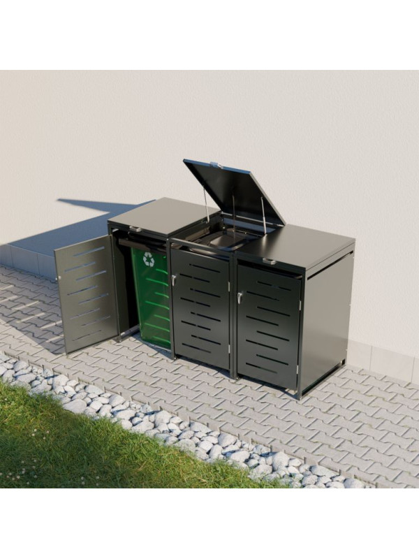 Kovový prístrešok pre 3 popolnice, antracit, 197×116×80 cm