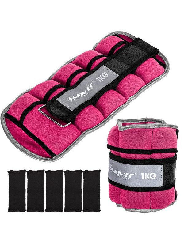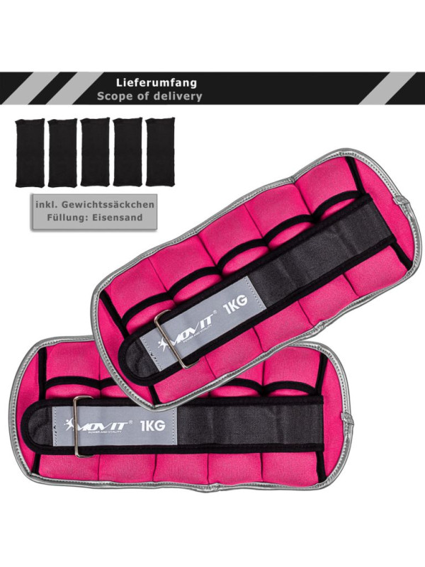 MOVIT Neoprénové reflexné záťažové manžety, 2 x 1 kg, ružové