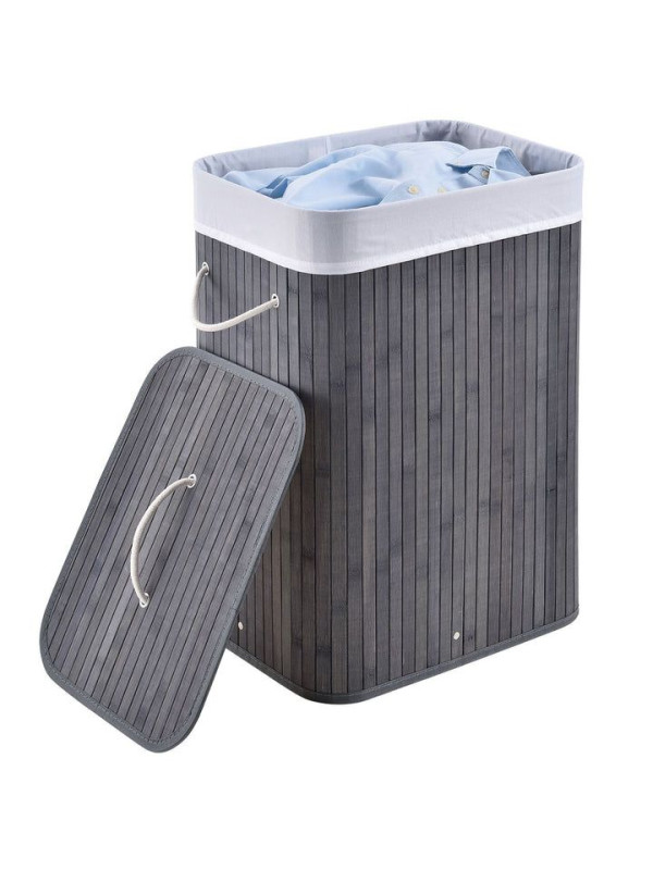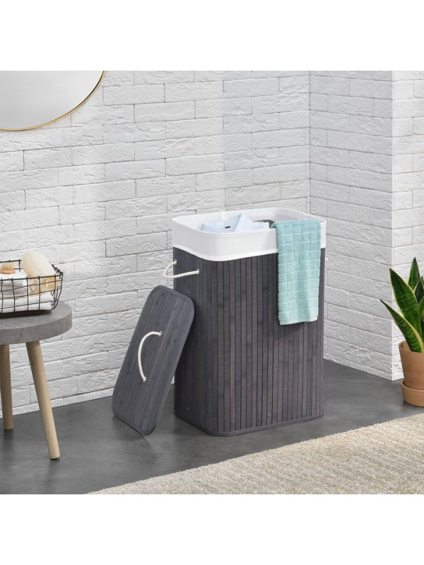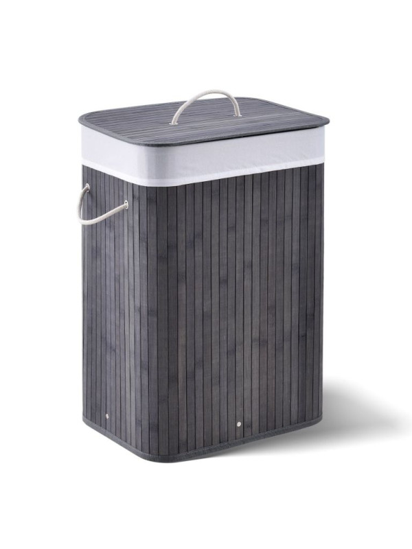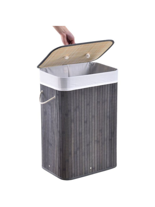 Bambusový košík na bielizeň s vekom, 72 l, sivý