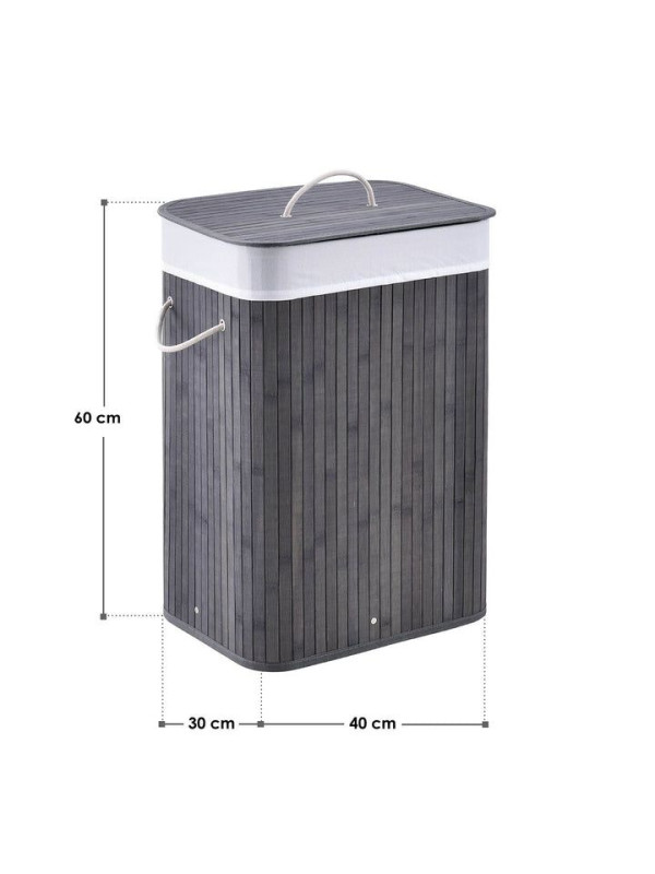 Robustná konštrukcia z bambusu, kovu a drevenej základne zaručuje dlhú životnosť a stabilitu. Košík je vybavený dvoma pevnými rukoväťami pre ľahké prenášanie a dá sa zložiť, aby šetril miesto. Omyvateľná polyesterová taška sa dá ľahko vybrať a prať pri 30 °C.