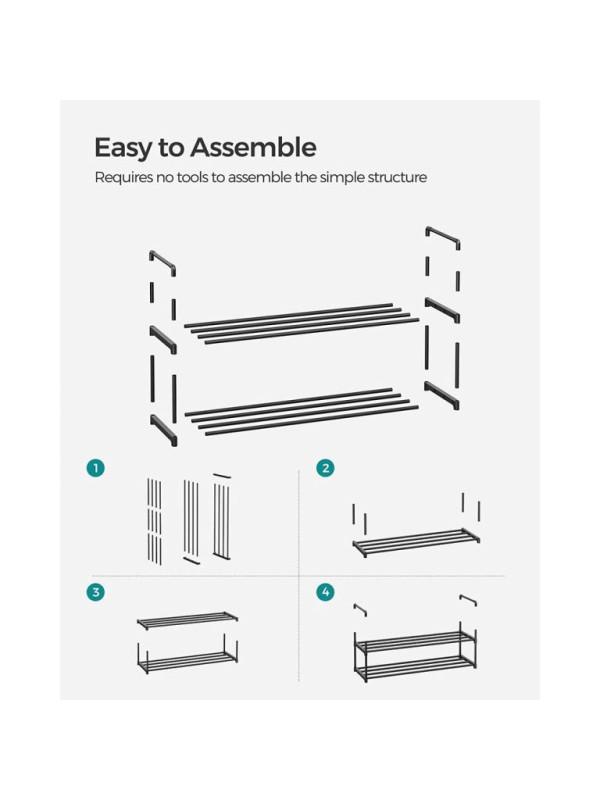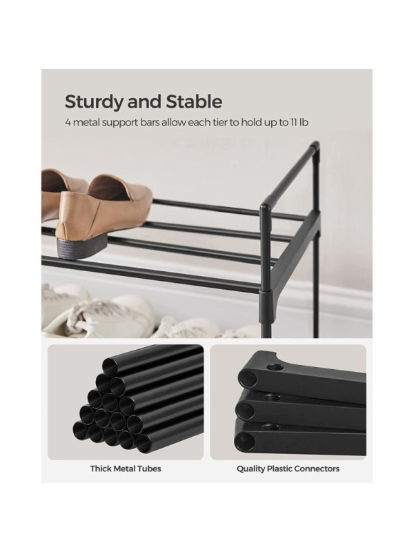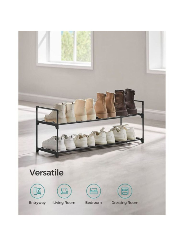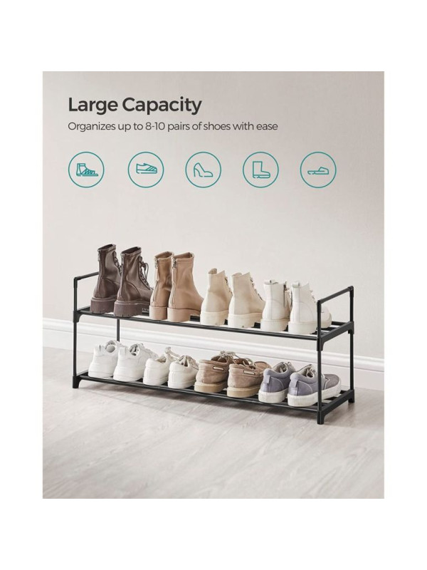 Udržujte svoj domov uprataný a štýlový s kovovým 2poschodovým stojanom SONGMICS. Ideálna pre predsiene, spálne či obývacie izby, pomáha rýchlo a prehľadne uložiť až 10 párov topánok. Vďaka modernému čiernemu dizajnu sa hodí do akéhokoľvek interiéru a šetrí cenný priestor.