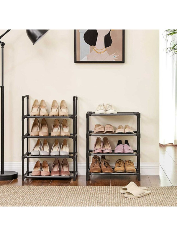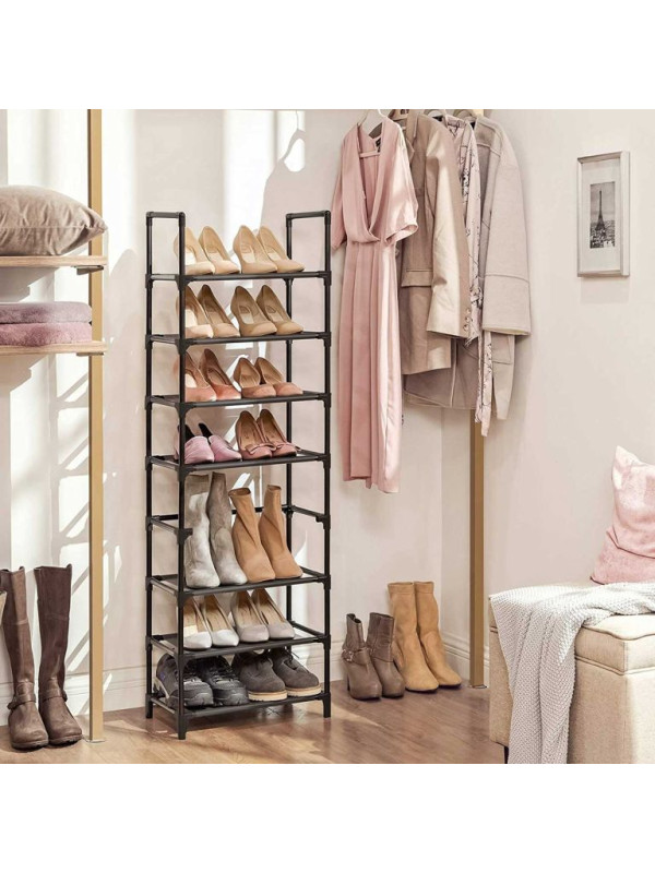 8-poschodový regál na topánky, 46×28×145 cm, kov, čierny