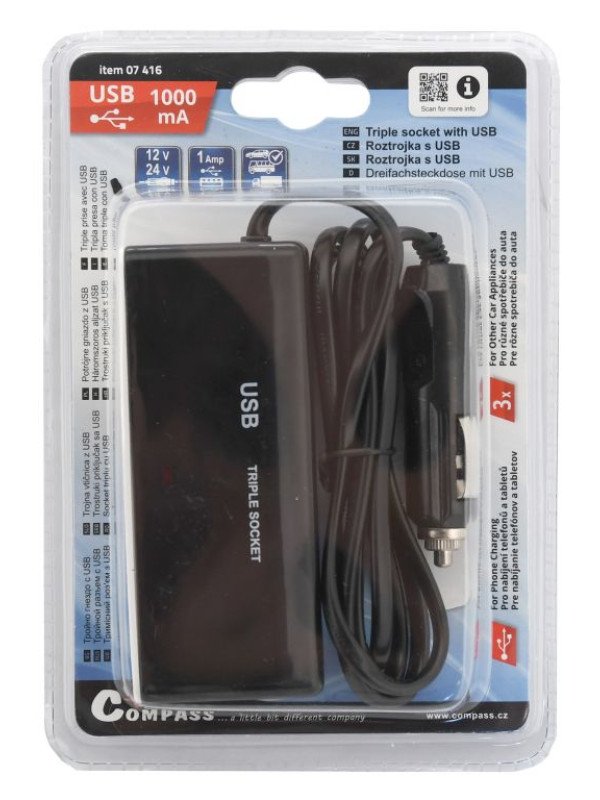 Roztrojka 12 / 24 V + USB 1000 mA