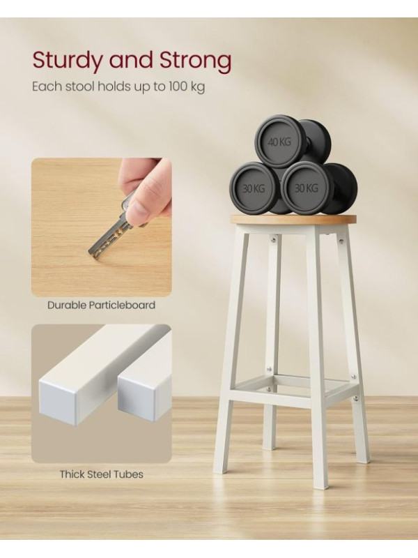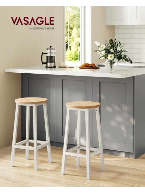 Sada 2 barových stoličiek, kovová konštrukcia, béžová a biel