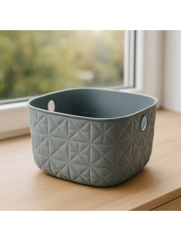 Úložný box Softex s objemom 3 l. Inšpirovaný technikou tkania a prešívania, ktorá vytvára plastický vzor. Vyrobený zo 70% z recyklovaných materiálov. Štýlový a zároveň praktický doplnok dodá domovu luxusný nádych.