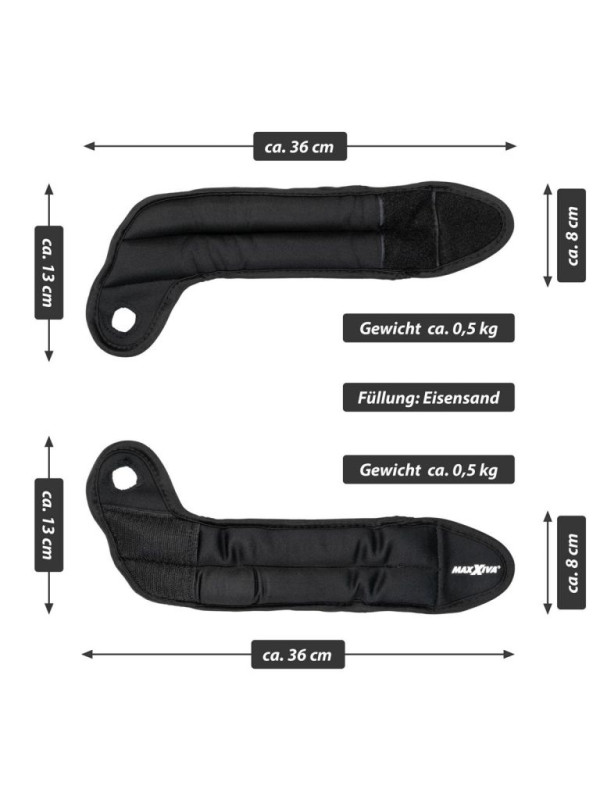 MAXXIVA sada záťažových manžiet na ruky, 2 x 0,5 kg, čierna