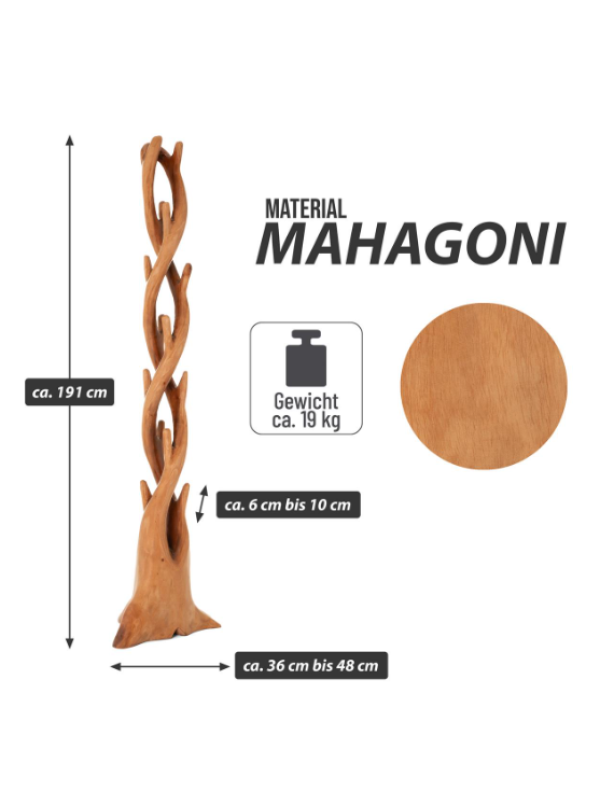Vešiak DIVERO z masívneho mahagónu, 190 cm