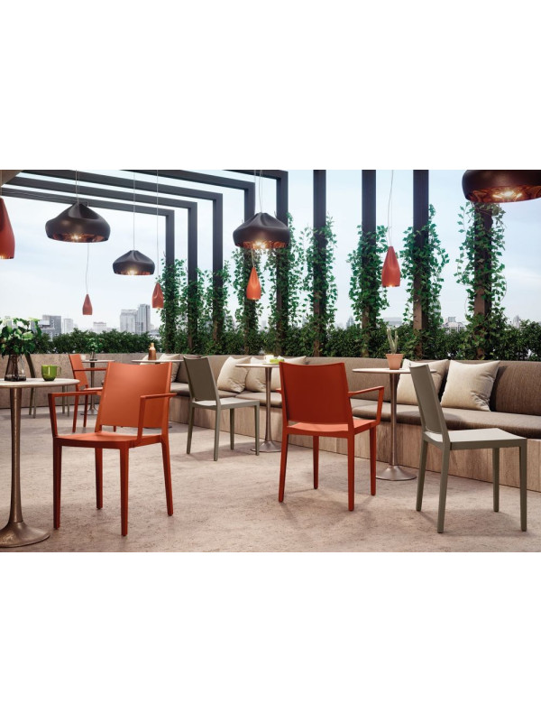 Jednoduchá, elegantná a praktická stolička s pevnou konštrukciou vyrobená zo 100 % recyklovaného materiálu. Tento materiál je odolný voči UV žiareniu. Stoličku je možné používať v interiéri aj exteriéri. Konštrukcia stoličky je nielen ľahká, ale aj veľmi pevná vďaka použitiu kompozitného materiálu vystuženého sklenenými vláknami. Stolička má nosnosť až 150 kg, a je preto vhodná na domáce aj komerčné použitie, napr. v reštauráciách alebo konferenčných miestnostiach. Stolička je tiež stohovateľná, čo vám umožňuje uskladniť ich veľa na malom priestore.