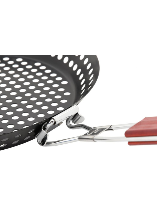 Panvica je vyrobená z kvalitnej ocele čierno-sivej farby, s priemerom 30 cm a hĺbkou 3,5 cm. Uplatnenie nájde napríklad pri príprave plátkov zemiakov, rýb a iných ďalších pokrmov. Panvicu je možné ľahko prenášať, najmä vďaka sklápacej rukoväti. Rukoväť je vyrobená z nerezovej ocele, v úchopovej časti doplnenej dreveným obložením pre pohodlnejší úchop.