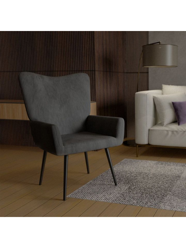 Pohodlné manžetové kreslo z manšestru, sivé