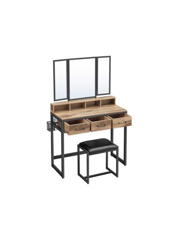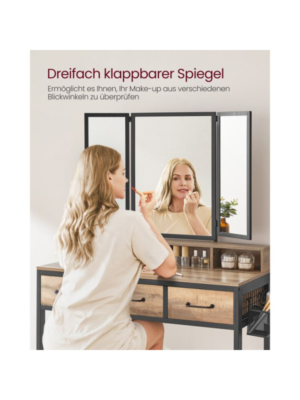 Toaletný stolík s tromi zrkadlami a úložnými priestormi