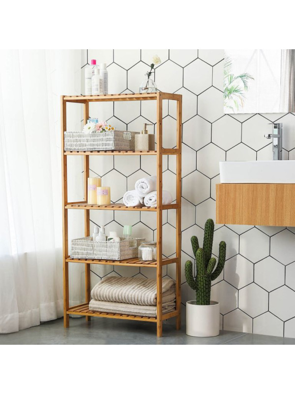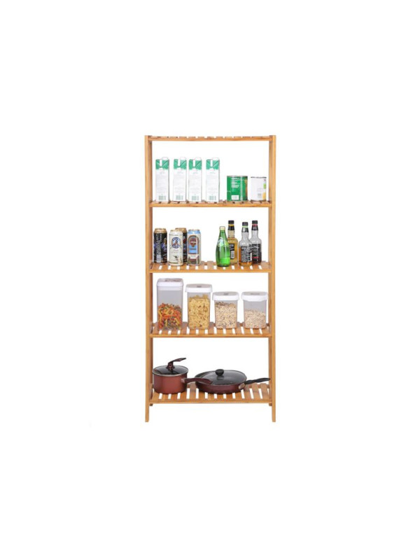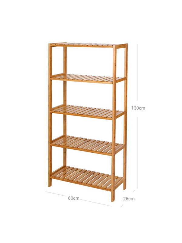 Prírodná bambusová policová jednotka, 5 políc,130x60x26 cm