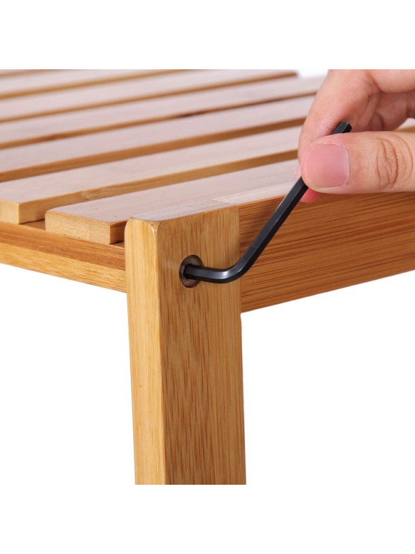 Regálová jednotka ponúka päť políc s nastaviteľnou výškou, ktoré sa prispôsobia vašim potrebám. Odolný bambus je nielen šetrný k životnému prostrediu, ale aj ľahko udržiavateľný. Montáž je jednoduchá a zvládne ju každý za okamih.
