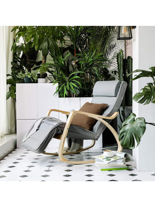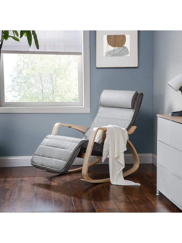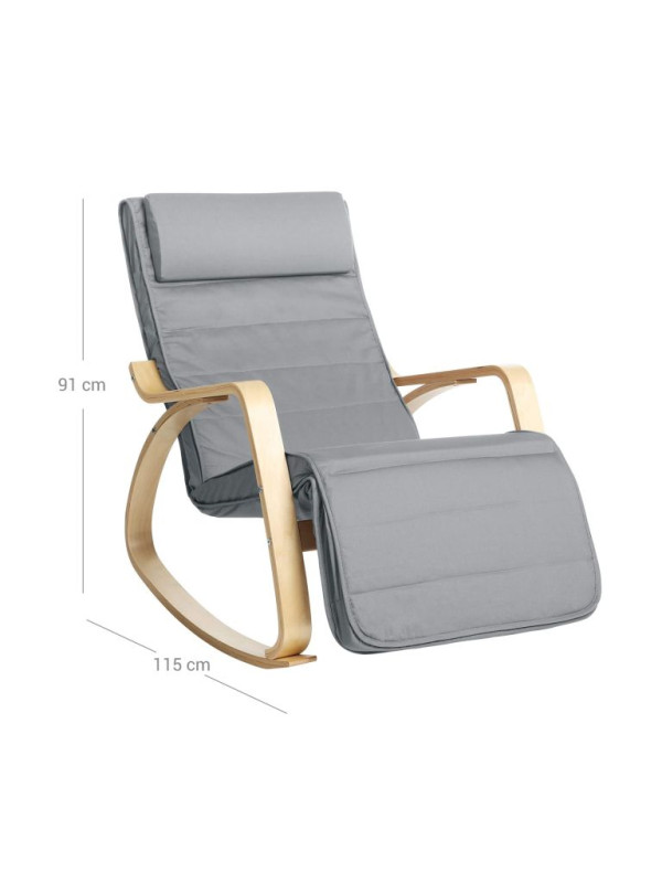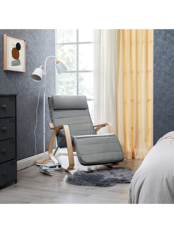Hojdacia stolička s opierkou na nohy a vankúšom, svetlo sivá
