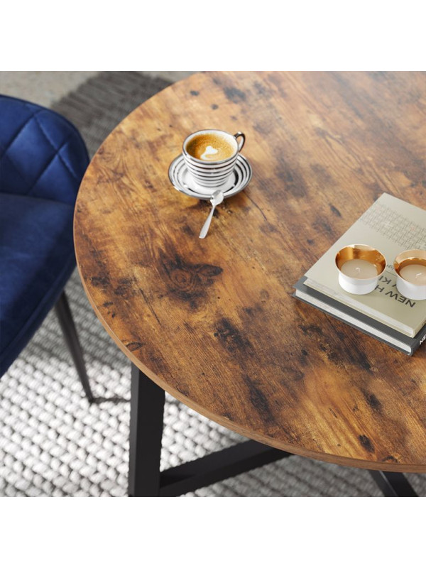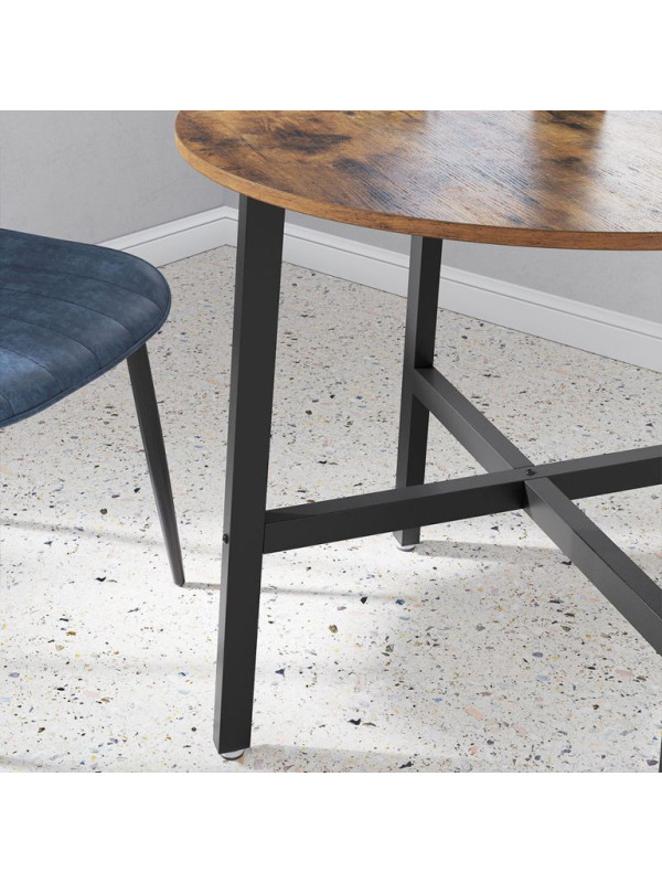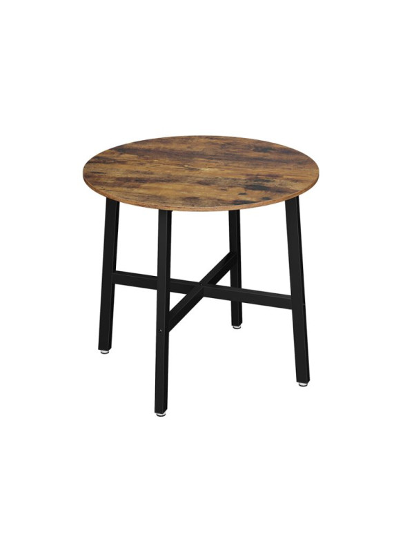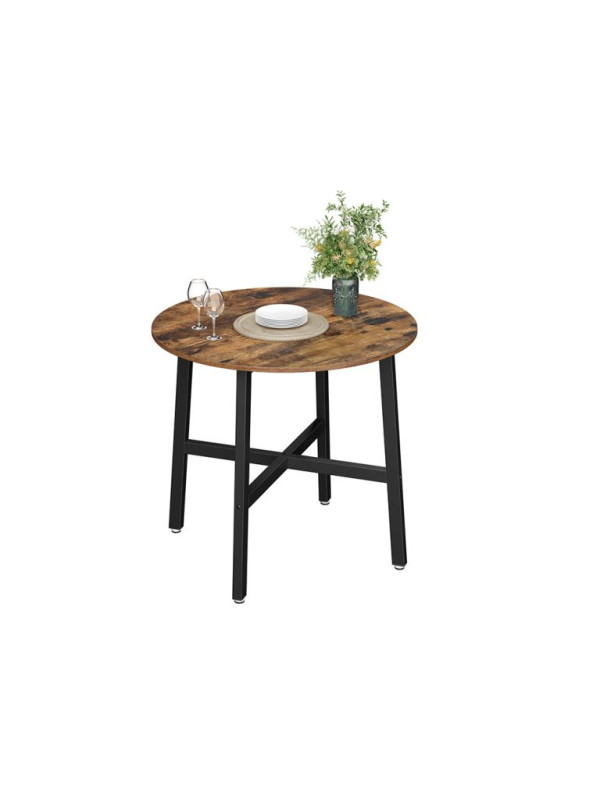 Vychutnajte si spoločne strávené chvíle pri stole, ktorý kombinuje moderný industriálny štýl s útulným nádychom dreva. Tento okrúhly jedálenský stôl vytvára priestor pre prirodzenú konverzáciu, zdieľanie zážitkov a príjemné rodinné večere. Jeho rustikálna hnedá povrchová úprava a čierna oceľová konštrukcia dodávajú každému interiéru osobitý charakter.