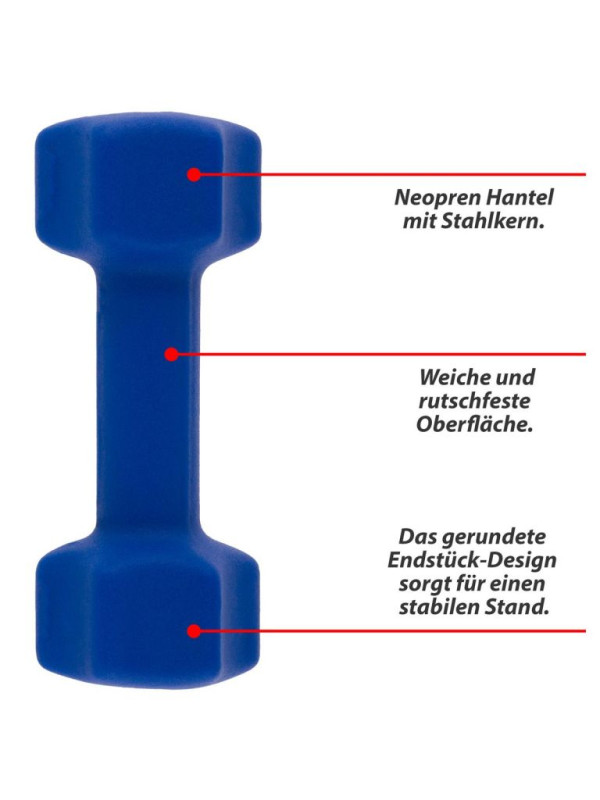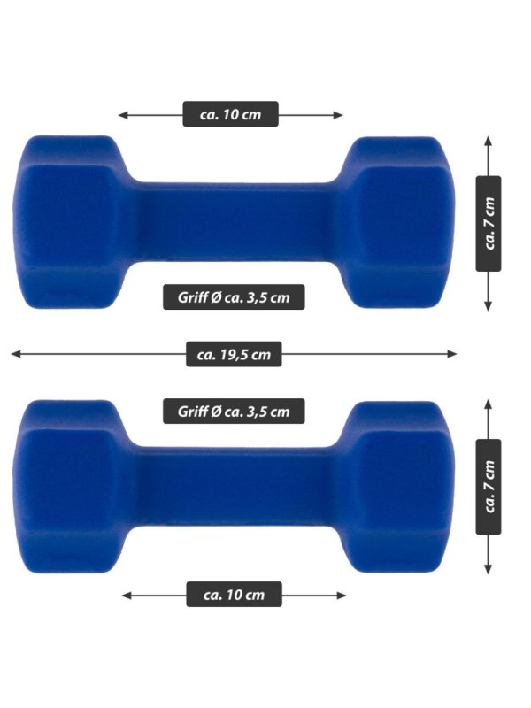 Optimálne činky na použitie v posilňovni aj doma, vhodné na tréning hrudníka, paží, bicepsov a tricepsov. Činky sú potiahnuté neoprénovou vrstvou - tá vytvára mäkký a nekĺzavý povrch, ktorý sa ľahko a pohodlne drží a je odolný proti poteniu. Jadro vyrobené z vysoko kvalitnej ocele zaručuje dlhú životnosť. Zaoblená konštrukcia koncov zaisťuje stabilné umiestnenie, ktoré zaisťuje Vašu bezpečnosť a zabraňuje skotúľaniu. Neoprénový kryt zabraňuje poškodeniu podlahy alebo úložných priestorov.