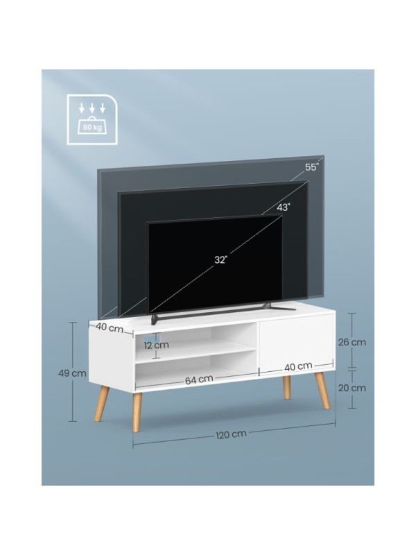 TV stolík – biely minimalistický dizajn, 120 × 40 × 49 cm