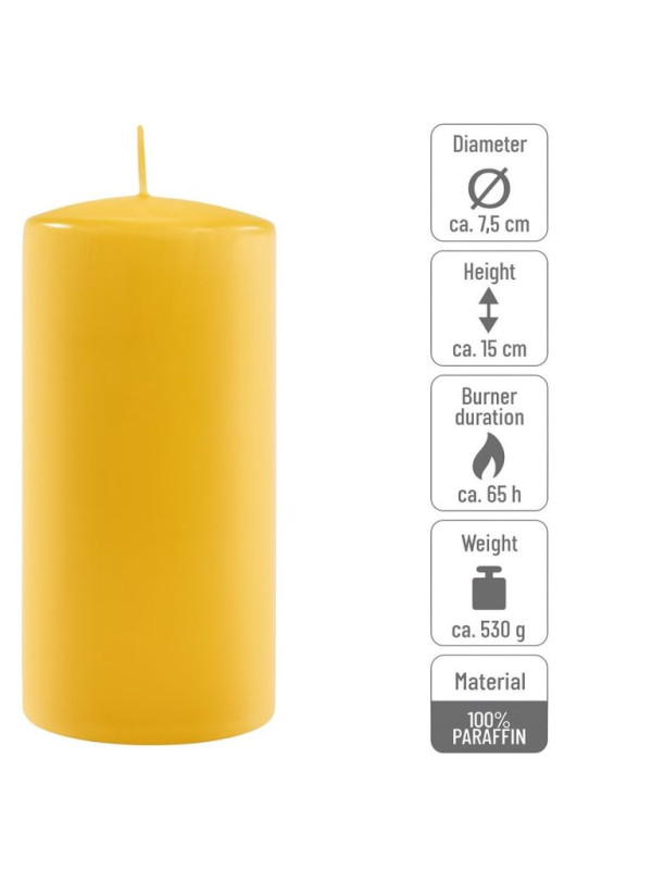 Sada stĺpových sviečok, 15 cm, Ø 7,5 cm, žltá, 2 ks