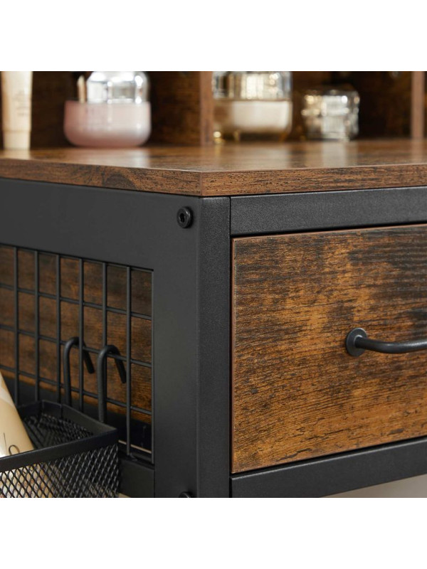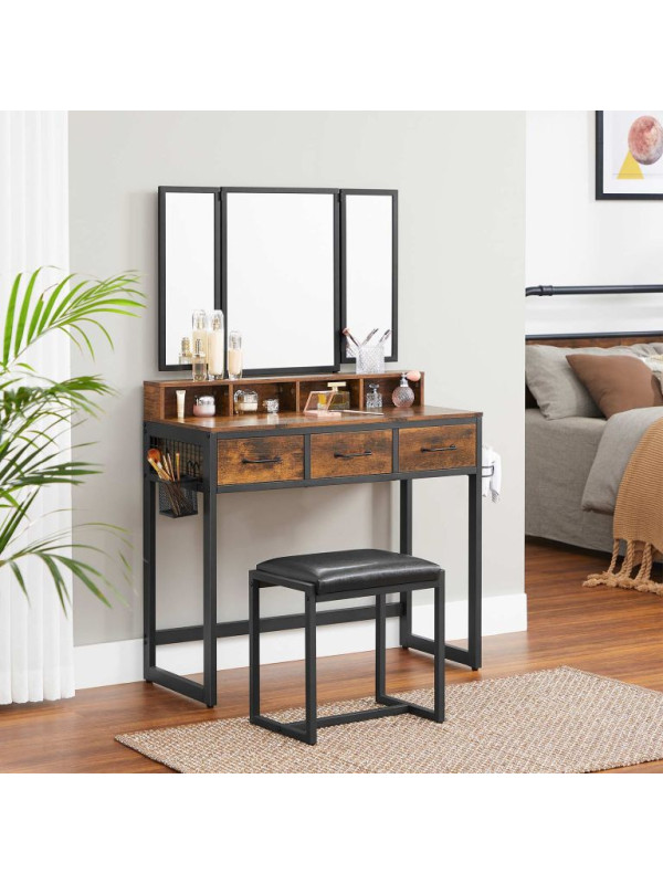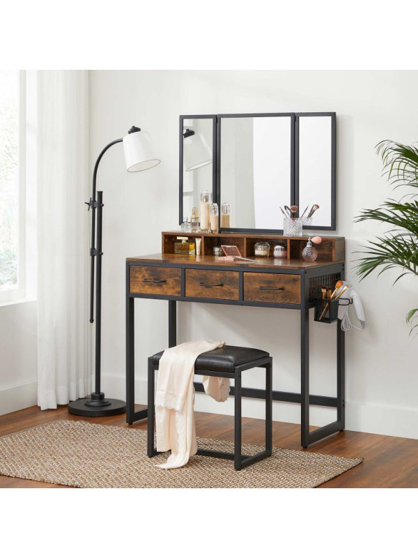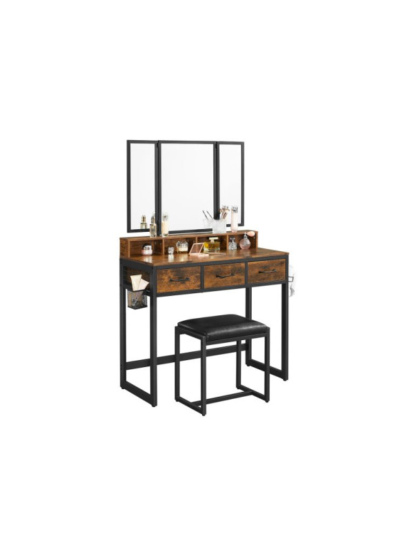 Toaletný stolík so zrkadlom a stoličkou, hnedý/čierny