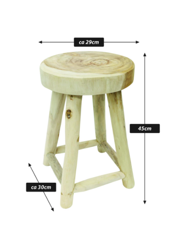 VAGOS okrúhla stolička z teakového dreva, 46 cm, prírodné