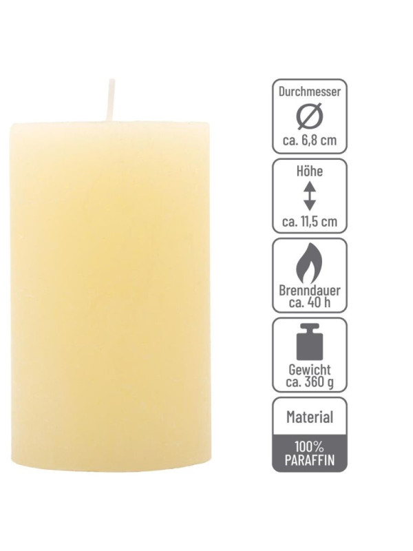 Krémová parafínová sviečka rustikálna 11,5 cm, 40h, sada 6ks