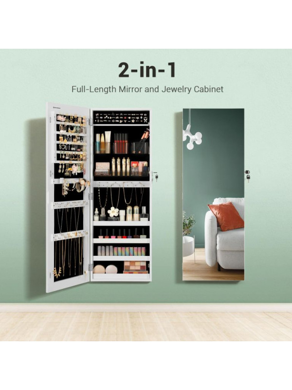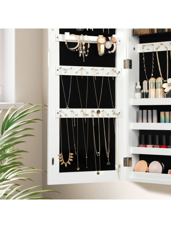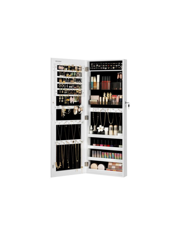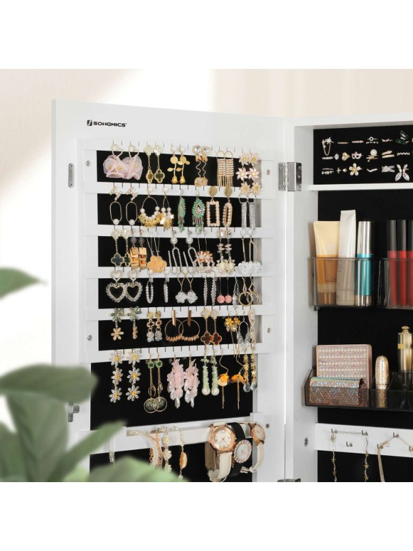 Závesná šperkovnica s veľkým zrkadlom, 2 v 1, biela