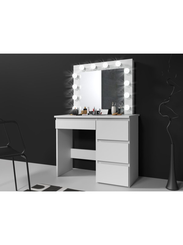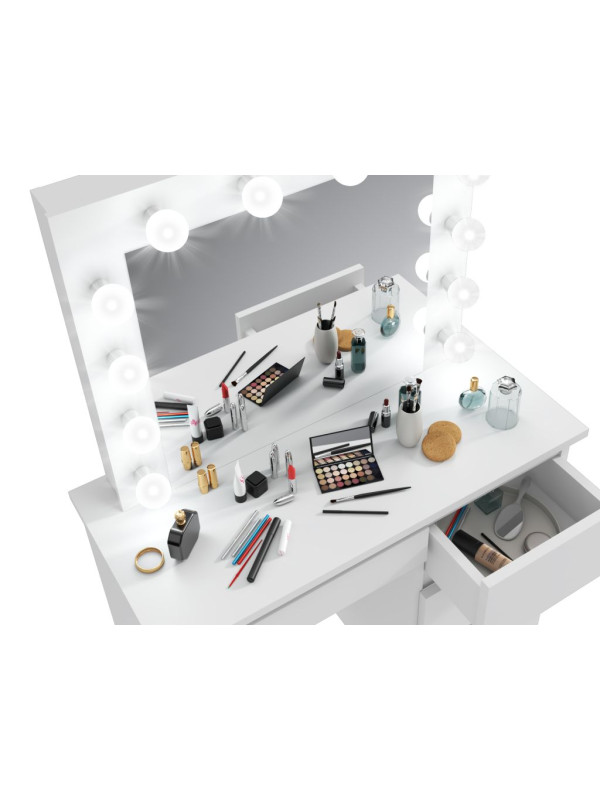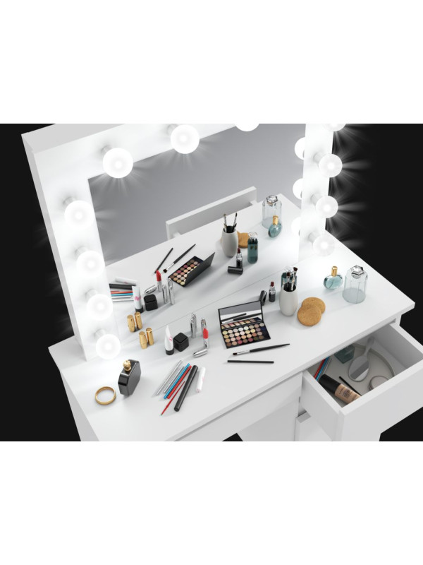 • Ideálne osvetlenie: veľké zrkadlo v štýle „Hollywood Vanity" s 12 neutrálnymi LED žiarovkami zaručuje rovnomerné osvetlenie tváre a uľahčuje precízne líčenie.