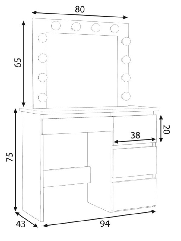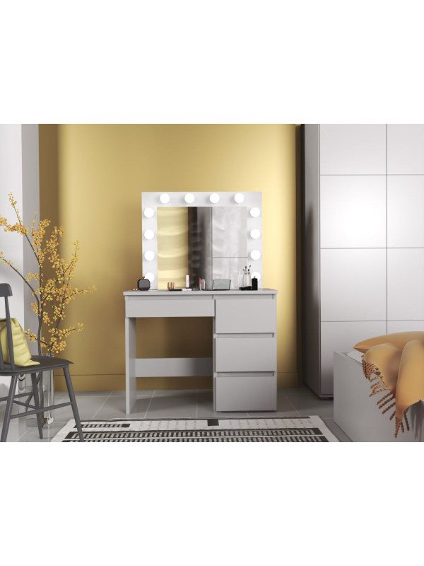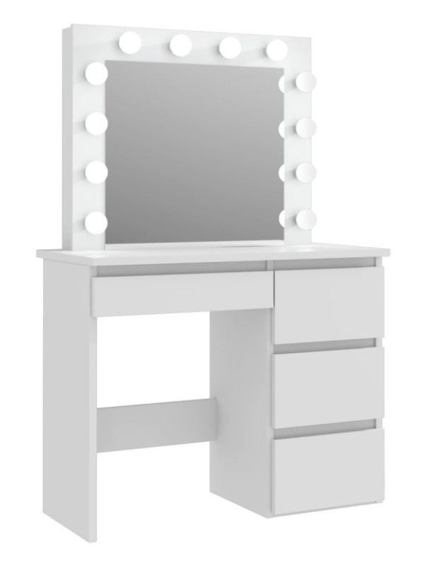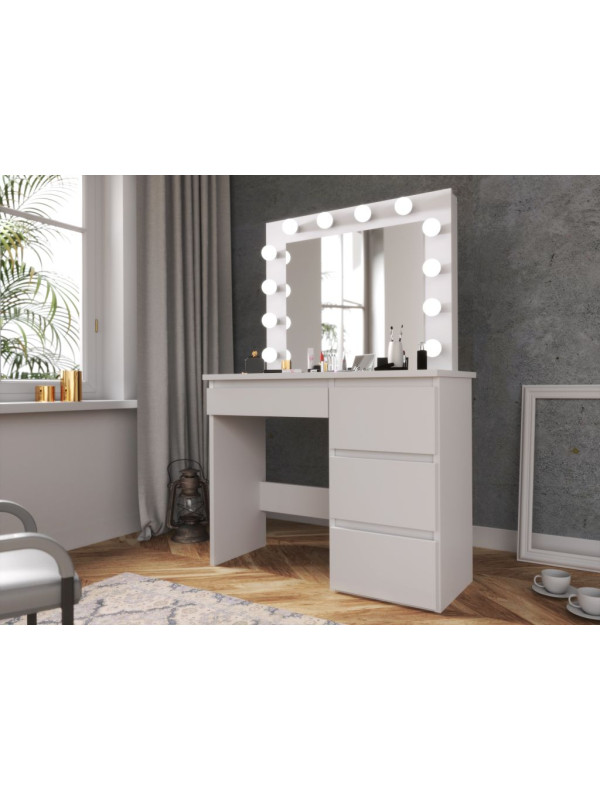 • Úložný priestor: Štyri priestranné zásuvky na kozmetiku, štetce, šperky a ďalšie doplnky pomáhajú udržiavať poriadok na pracovnej ploche.