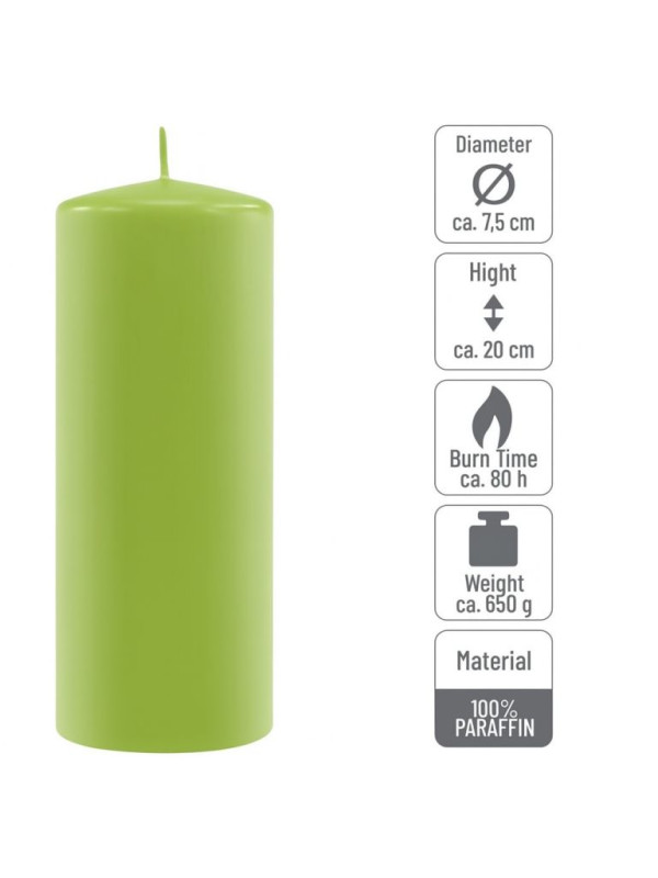 Sada stĺpových sviečok, 20 cm, Ø 7,5 cm, svetlozelená, 2 ks