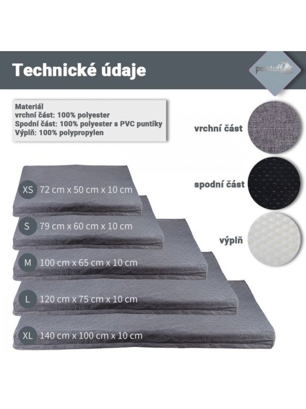Vankúšik pre psa veľkosť XS, svetlo šedý, 72 x 50 x 10 cm