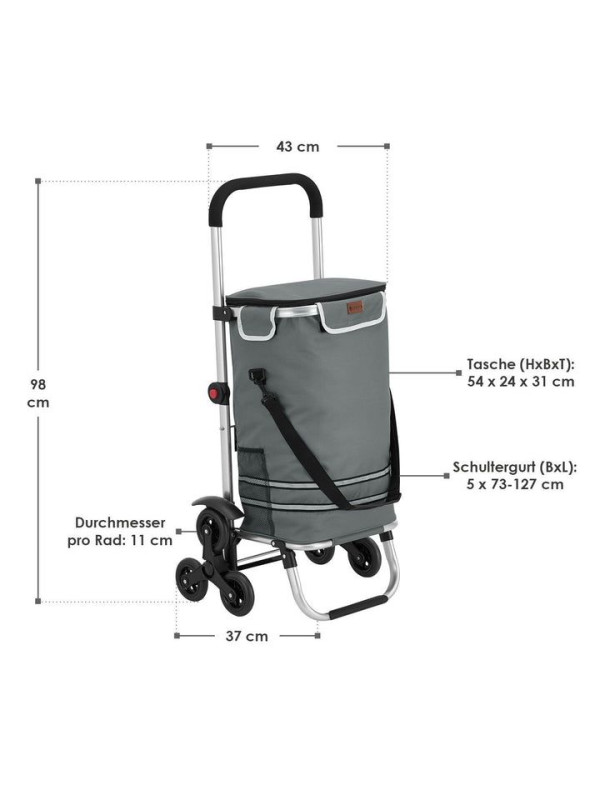 3v1 nákupný vozík s kolieskami,chladiacou taškou, 56 l,sivý